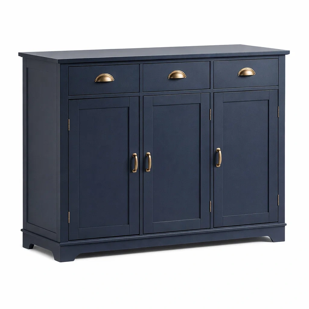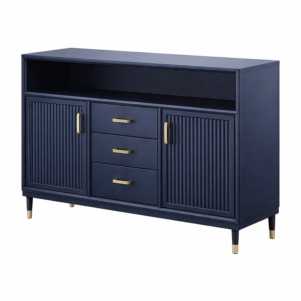 Buffet en bois bleu foncé avec poignées en métal 120 x 40 x 90 cm