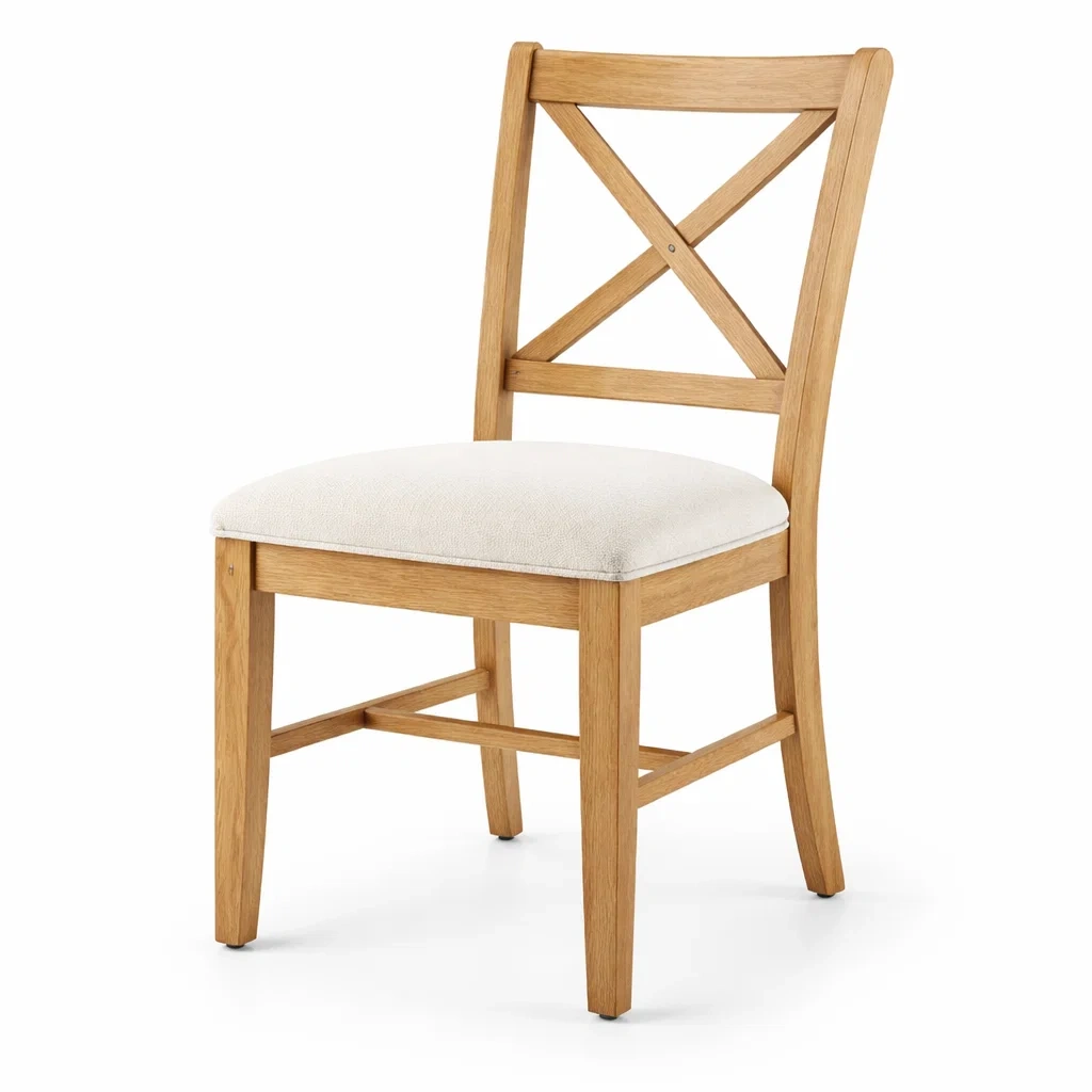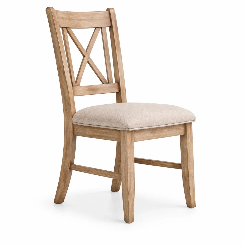 Chaise de salle à manger en bois avec assise en tissu beige
