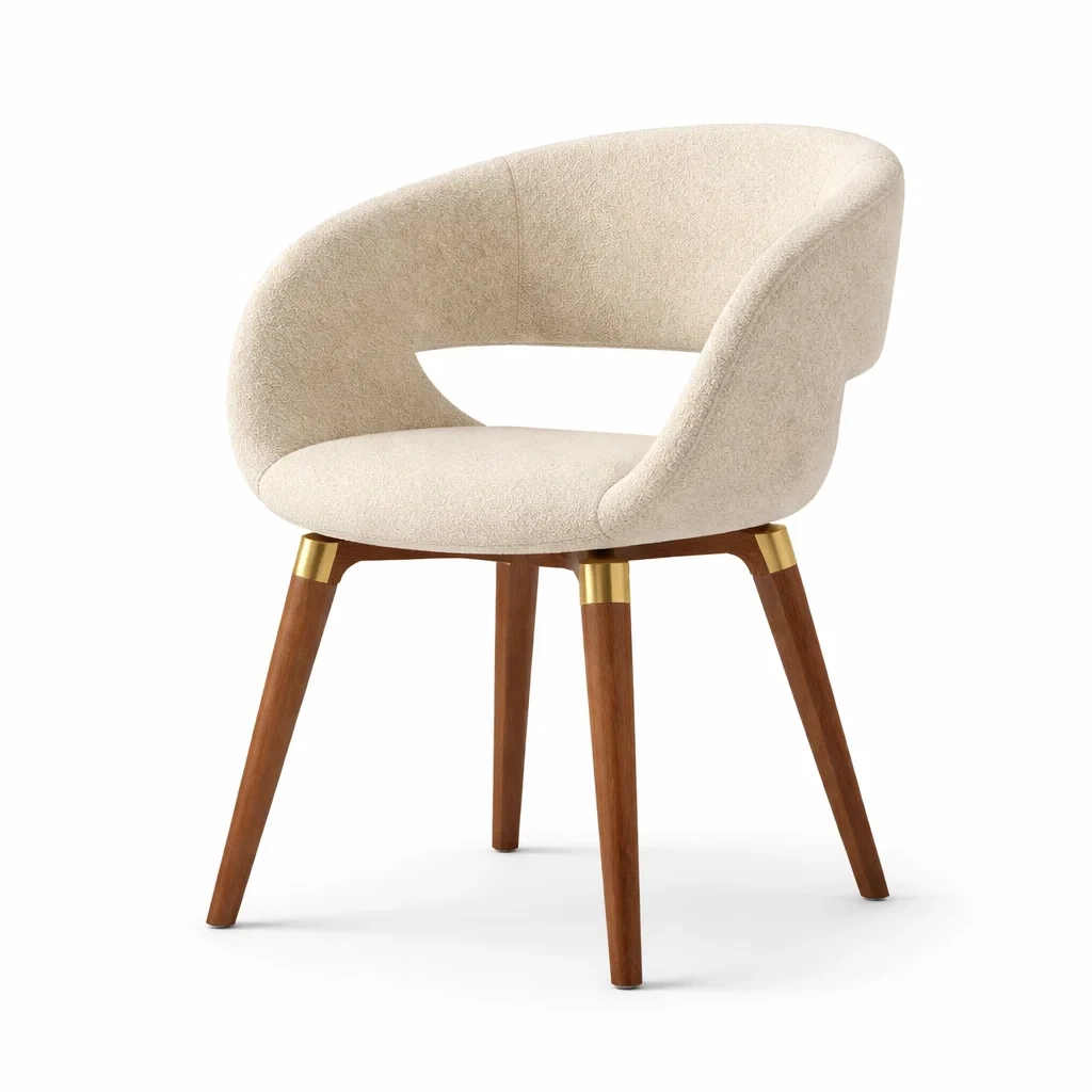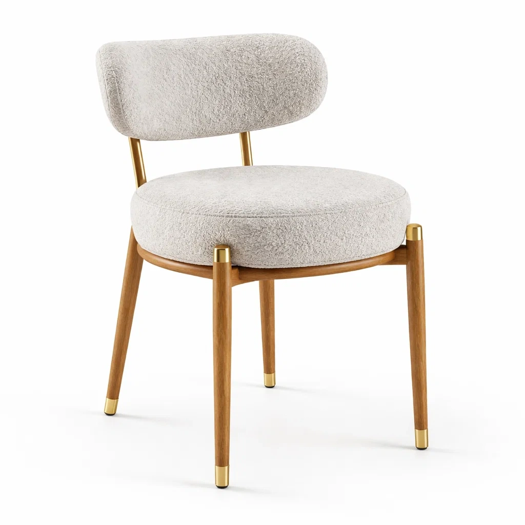 Chaise de salle à manger en bois avec tissu bouclé beige