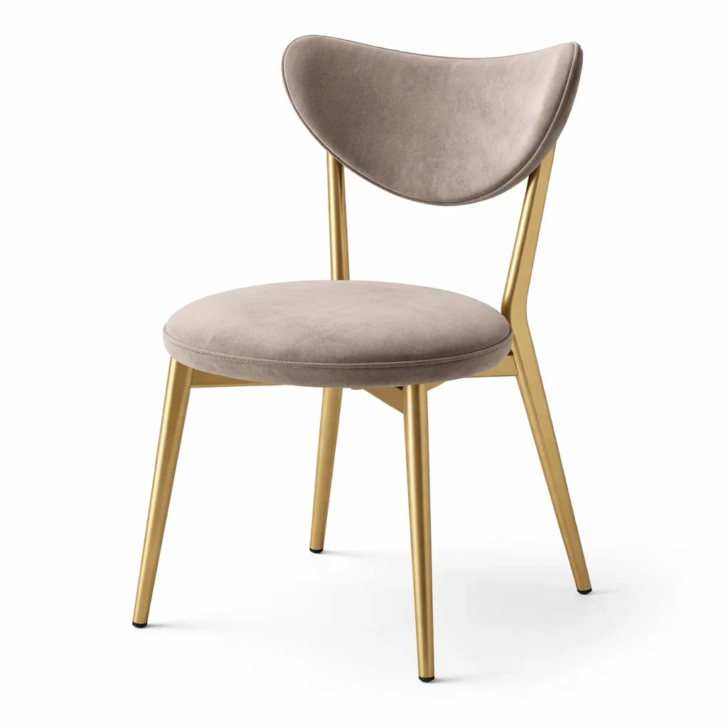 Chaise de salle à manger en velours taupe et métal doré