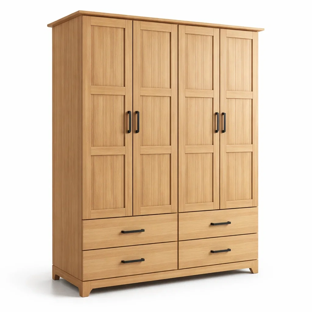 Armoire en bois d'érable avec 4 portes et 4 tiroirs