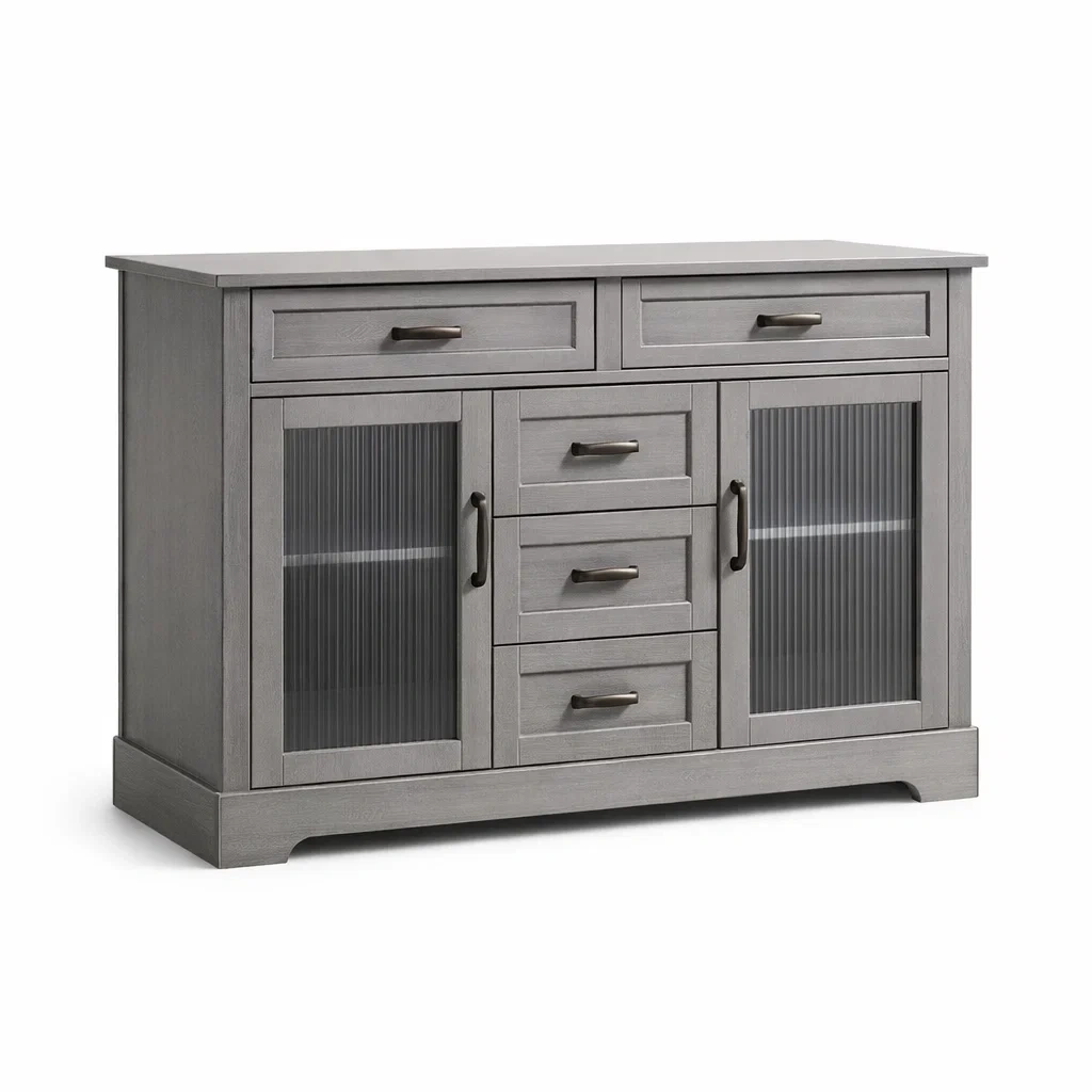 Buffet en bois avec portes en verre cannelé et tiroirs 120 x 40 x 85 cm