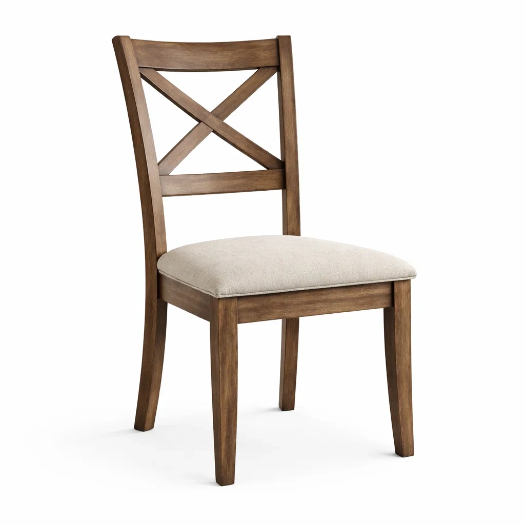 Chaise de salle à manger en bois avec assise en tissu beige