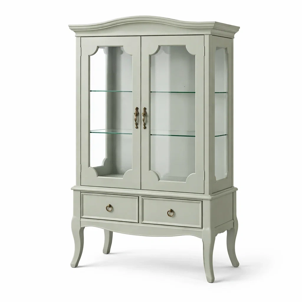Vitrine en bois avec étagères en verre trempé gris