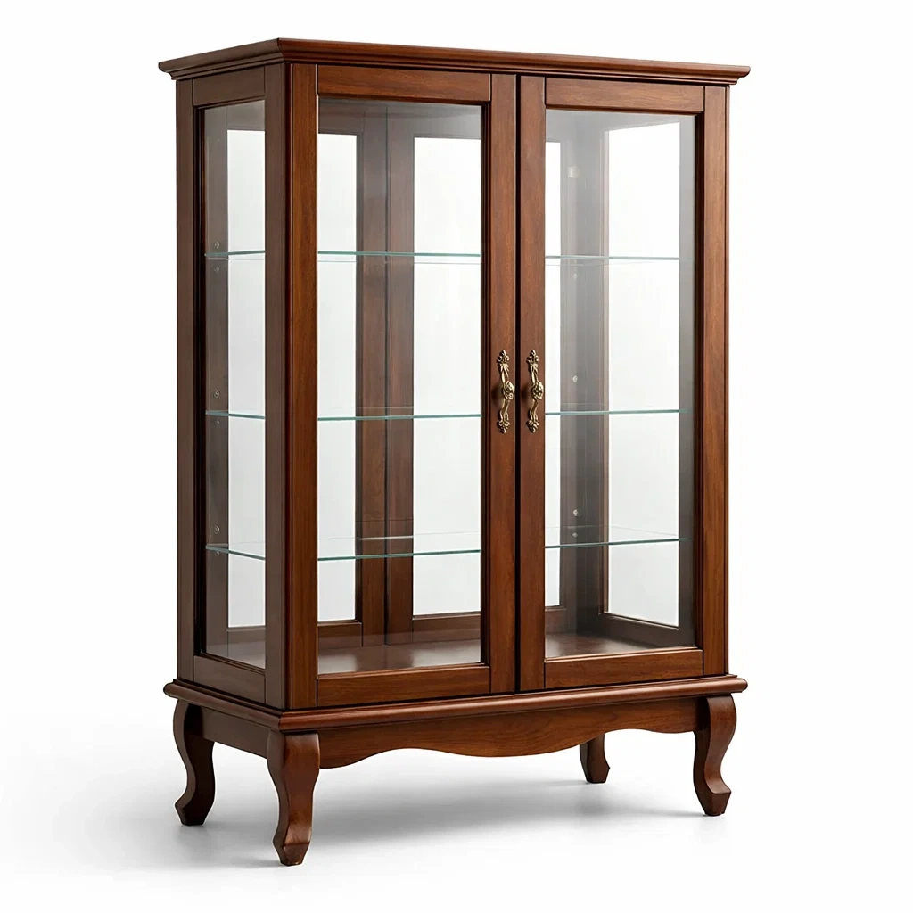 Elle est équipée de portes doubles en verre trempé et contient trois tablettes en verre pour offrir un espace d'affichage optimisé. Conçue pour une utilisation intérieure.