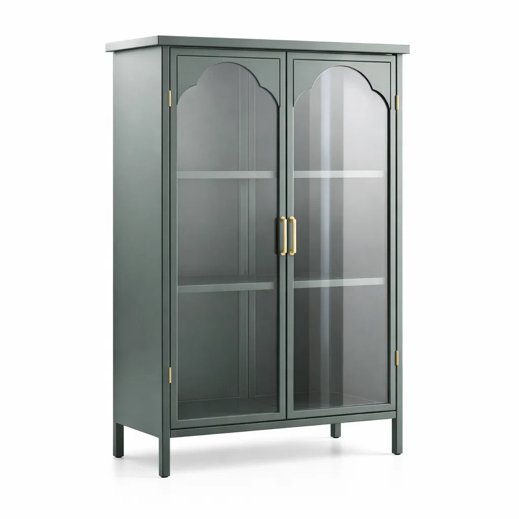 La finition est mate, et la couleur principale est le Vert. Équipée de portes battantes avec trois espaces de rangement, les étagères intérieures sont réglables.